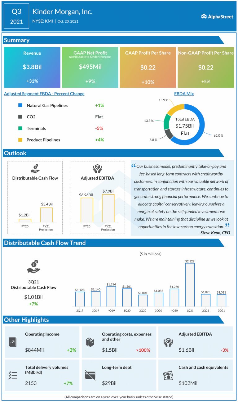 Kinder Morgan, Inc. (NYSE: KMI) reported third-quarter 2021 earnings results today. Revenues totalled $3.8 billion compared to $2.9...