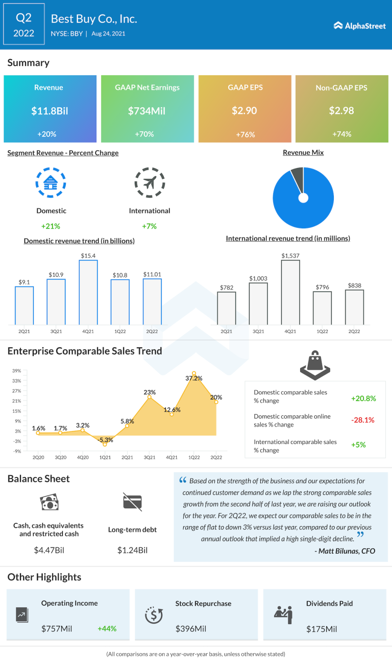 Best Buy (NYSE: BBY) reported second-quarter 2021 financial results before the regular market hours on Tuesday. The retail...