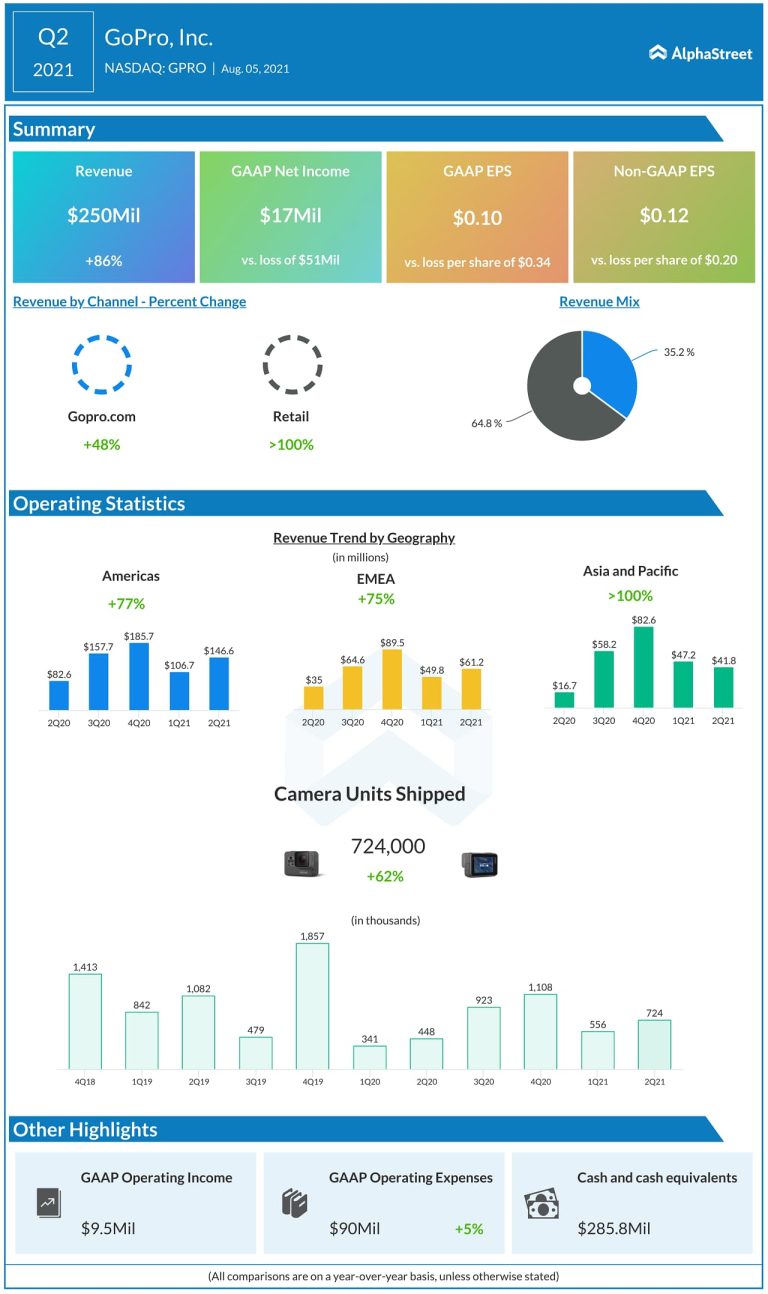 GoPro, Inc. (NASDAQ: GPRO) today reported its second quarter financial results for the period ended June 30, 2021....