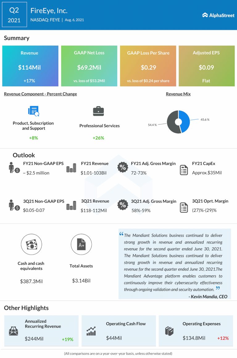 FireEye Inc. (NASDAQ: FEYE) reported second-quarter 2021 earnings results today. Revenues increased 17% to $114 million compared to...