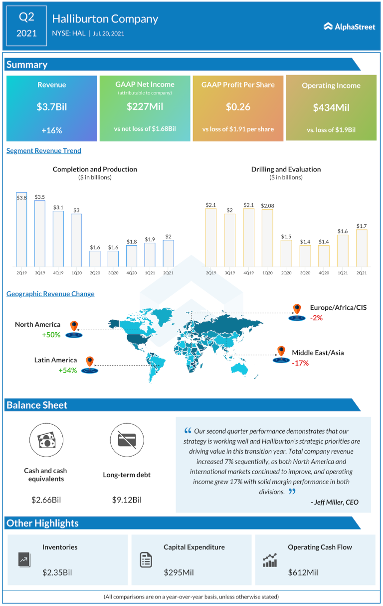 Halliburton (NYSE: HAL) reported second-quarter 2021 financial results before the regular market hours on Tuesday. The drilling equipment...