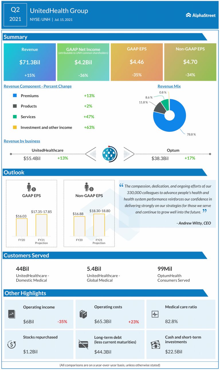 UnitedHealth Group Incorporated (NYSE: UNH) reported second-quarter 2021 earnings results today. Revenues grew 15% to $71.3 billion year-over-year,...