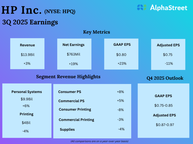 HP Inc. (NYSE: HPQ) reported its third quarter 2025 earnings results today. Net revenue was $13.9 billion, up...