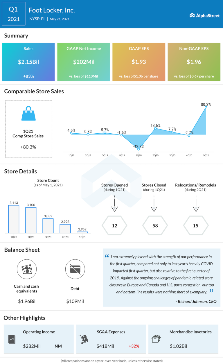 Foot Locker, Inc (NYSE: FL) reported first-quarter 2021 financial results before the regular market hours on Friday. The...