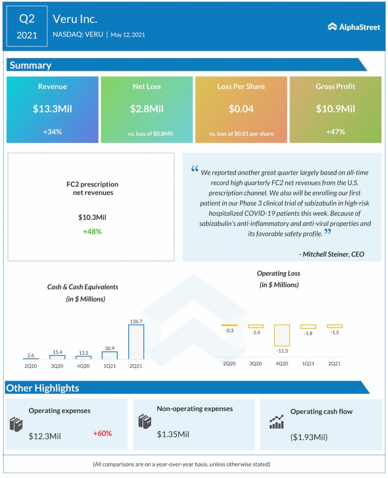 Veru Inc. (NASDAQ: VERU) reported its financial results for the second quarter ended March 31, 2021, on Wednesday...