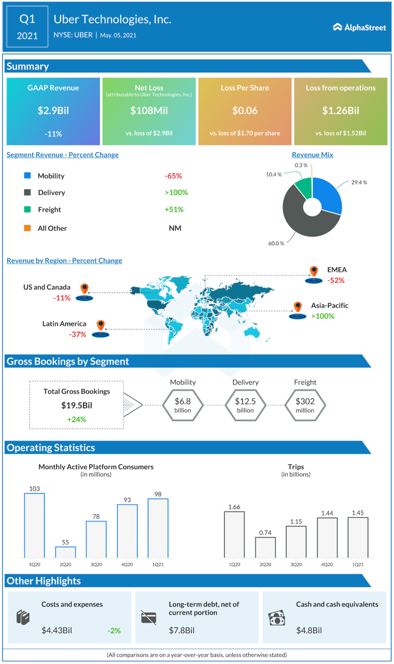 Uber Technologies (NYSE: UBER) reported first-quarter 2021 financial results after the regular market hours on Wednesday. The ride-hailing...