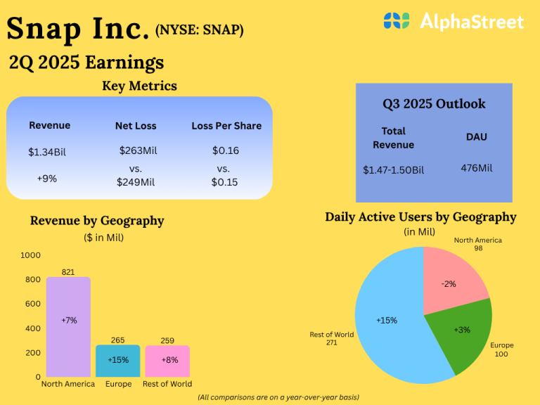 Snap Inc. (NYSE: SNAP) reported its second quarter 2025 earnings results. Revenue was $1.34 billion, up 9% year-over-year....