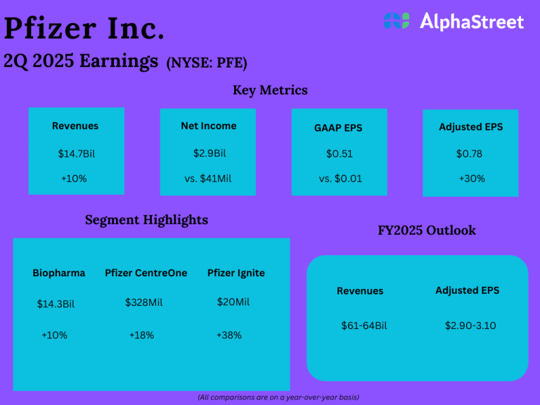 Pfizer Inc. (NYSE: PFE) reported its second quarter 2025 earnings results today. Revenues were $14.7 billion, up 10%...