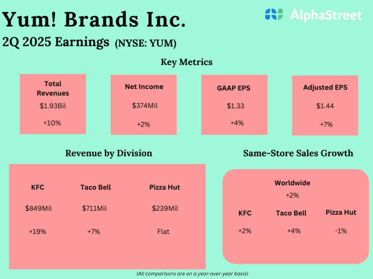 Yum! Brands, Inc. (NYSE: YUM) reported its second quarter 2025 earnings results today. Total revenues increased 10% year-over-year...