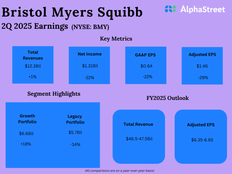 Bristol Myers Squibb (NYSE: BMY) reported its second quarter 2025 earnings results today. Total revenues inched up 1%...