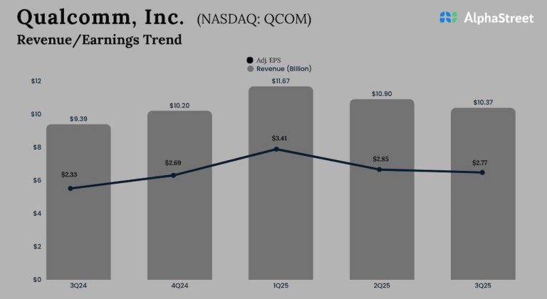 Qualcomm, Inc. (NASDAQ: QCOM) on Wednesday reported higher third-quarter revenue and profit that surpassed the market’s expectations. Revenues...
