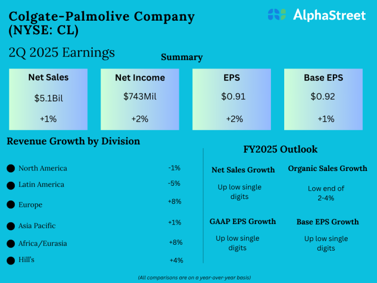 Colgate-Palmolive Company (NYSE: CL) reported its second quarter 2025 earnings results today. Net sales increased 1% year-over-year to...
