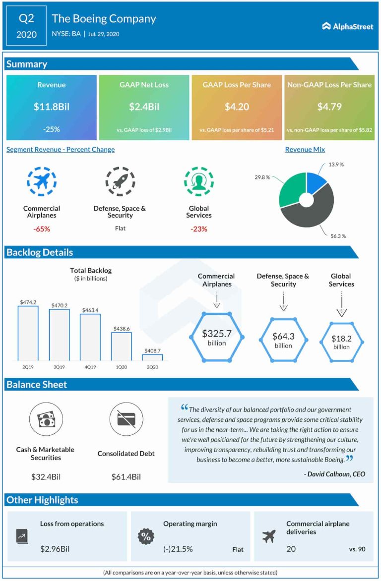 The Boeing Company (NYSE: BA) reported a narrower net loss for the June-quarter even as revenues decreased 25%,...