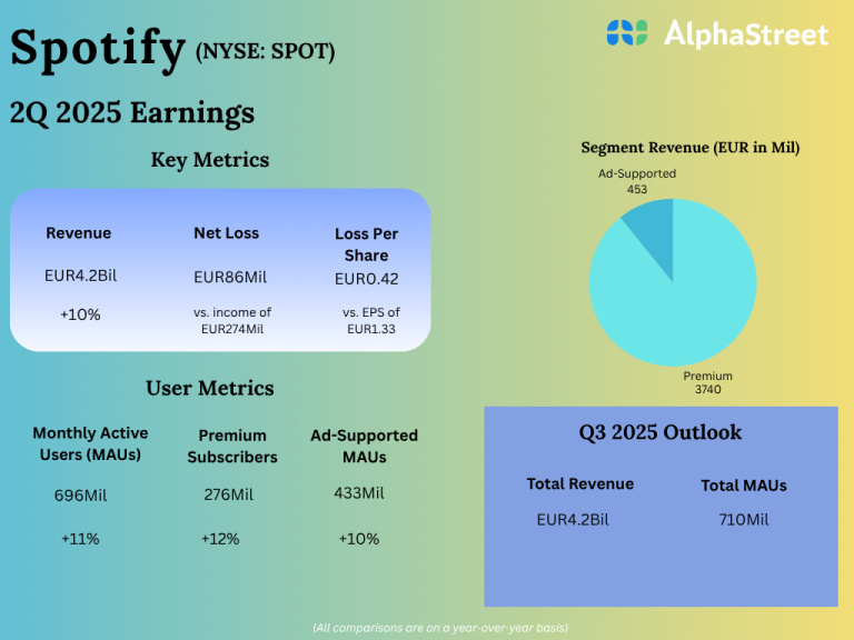 Spotify (NYSE: SPOT) reported its second quarter 2025 earnings results today. Total revenue increased 10% year-over-year to EUR4.2...