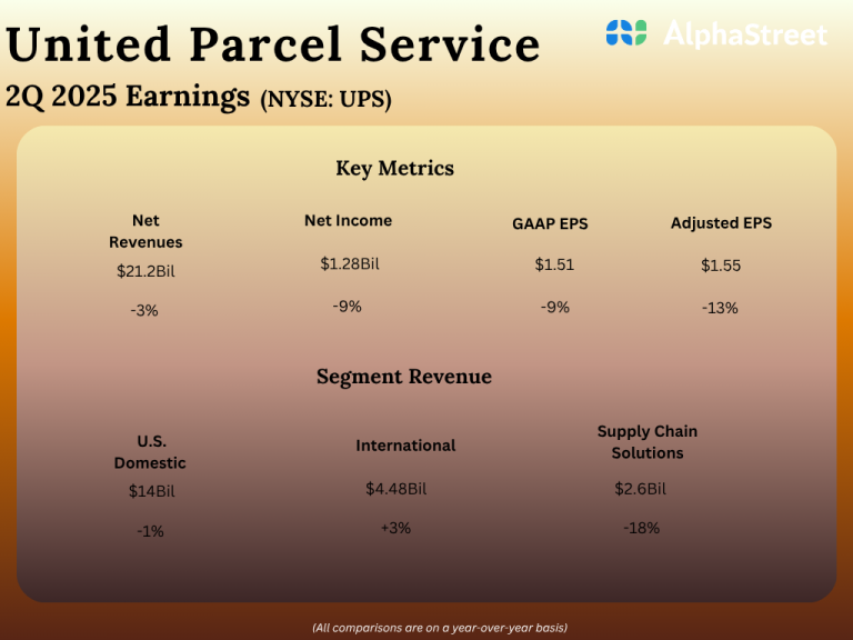 UPS (NYSE: UPS) reported its second quarter 2025 earnings results today. Total revenue decreased 2.7% year-over-year to $21.2...