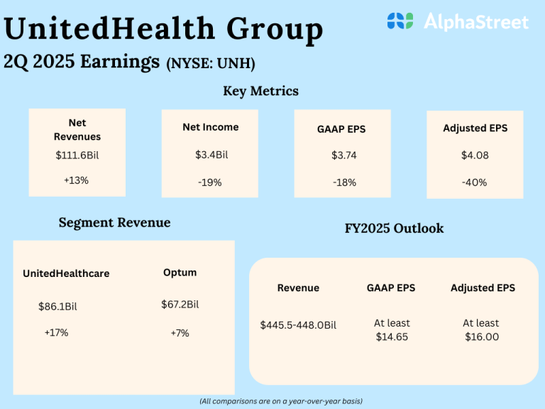 UnitedHealth Group (NYSE: UNH) reported its second quarter 2025 earnings results today. Total revenues were $111.6 billion compared...