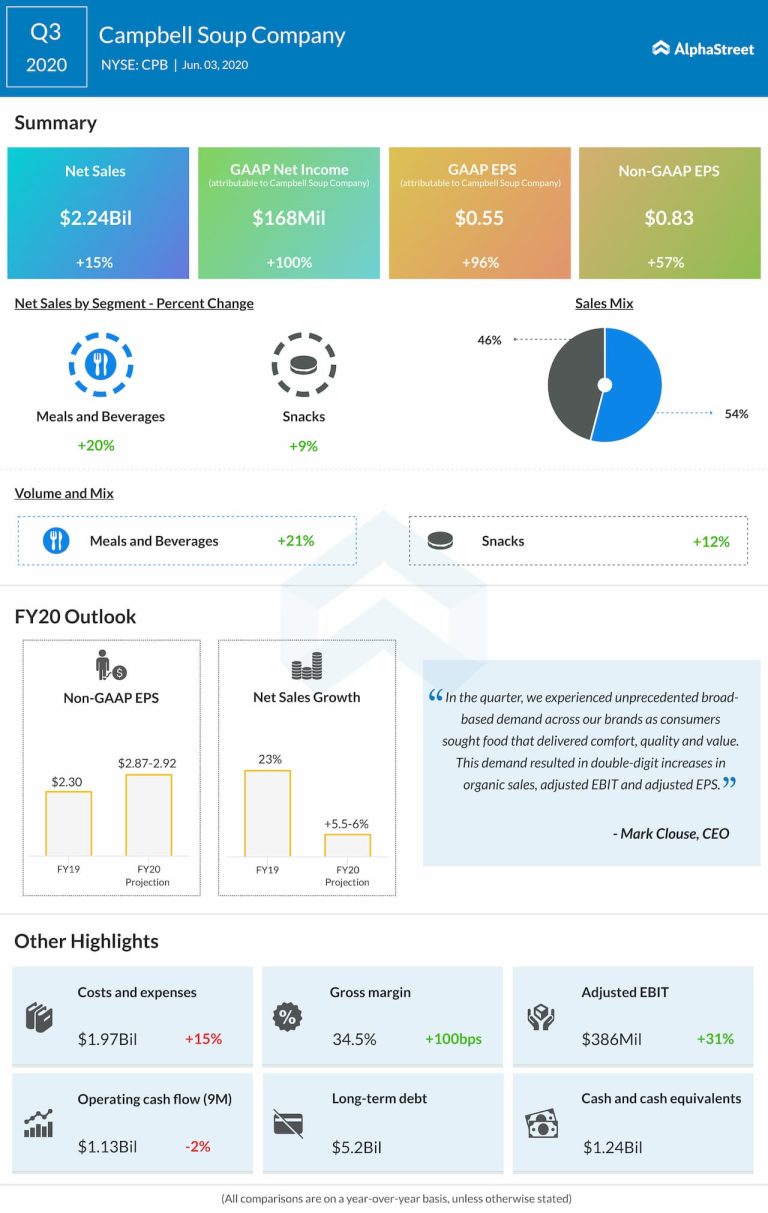Campbell Soup Company (NYSE: CPB) reported its financial results for the quarter ended April 26, 2020, on Wednesday...