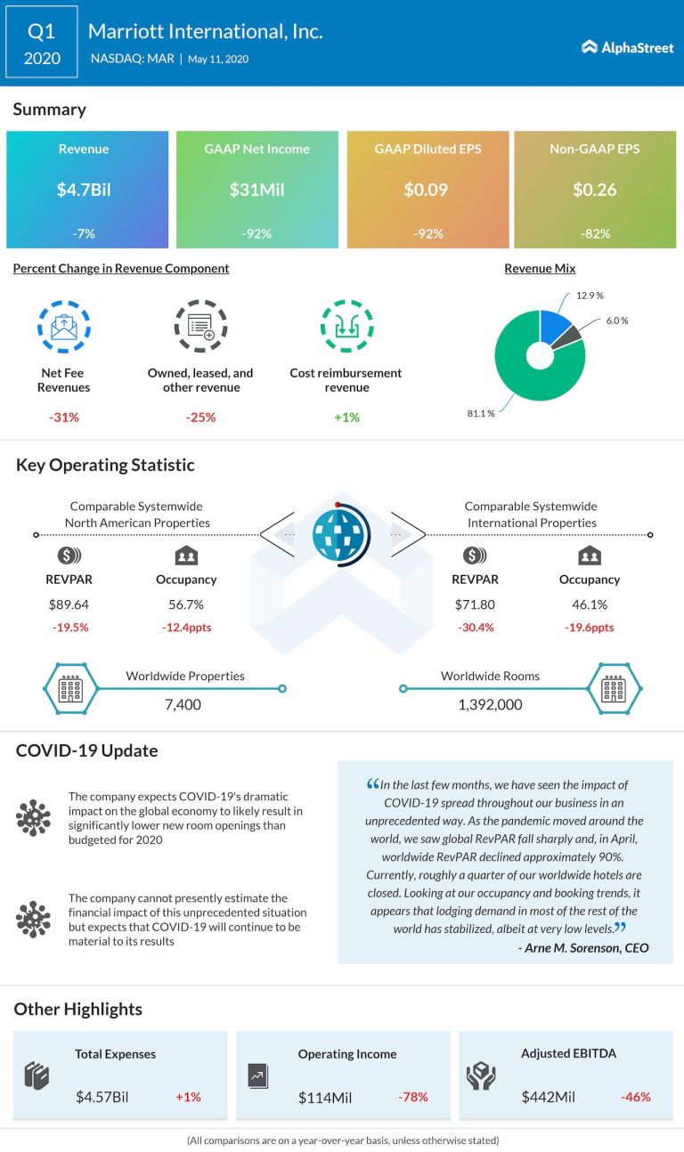 Marriott International Inc. (NASDAQ: MAR) reported its first-quarter 2020 results, which were dramatically impacted by the COVID-19 global...