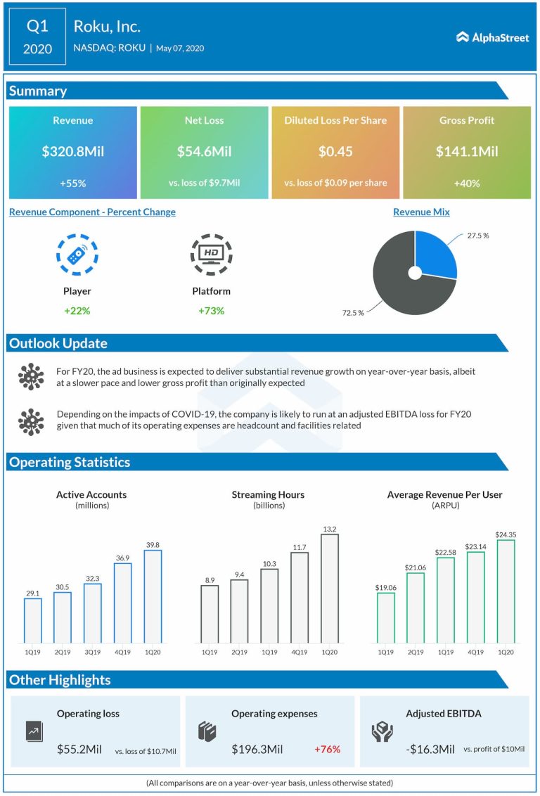 Roku, Inc. (NASDAQ: ROKU) reported a wider loss in the first quarter of 2020 due to higher costs...
