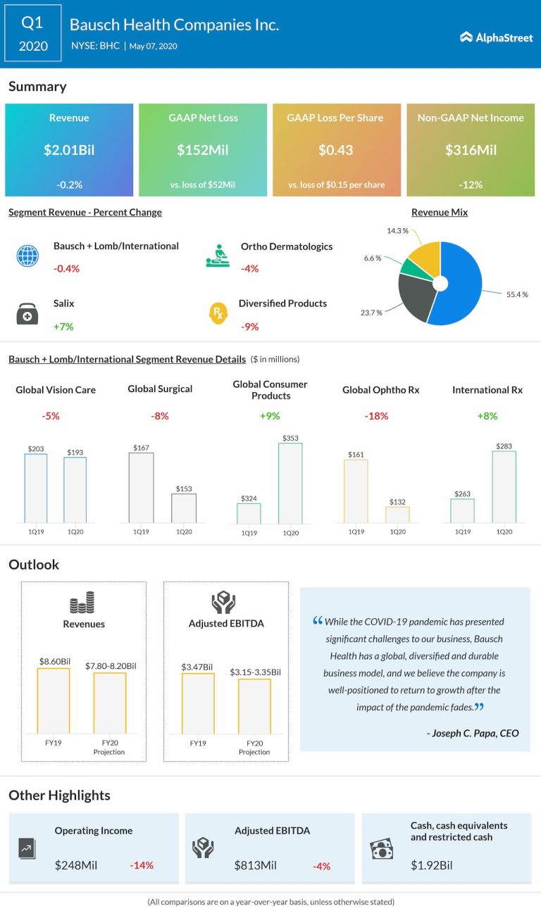 Bausch Health Companies Inc. (NYSE: BHC) reported a wider loss in the first quarter of 2020 due to...