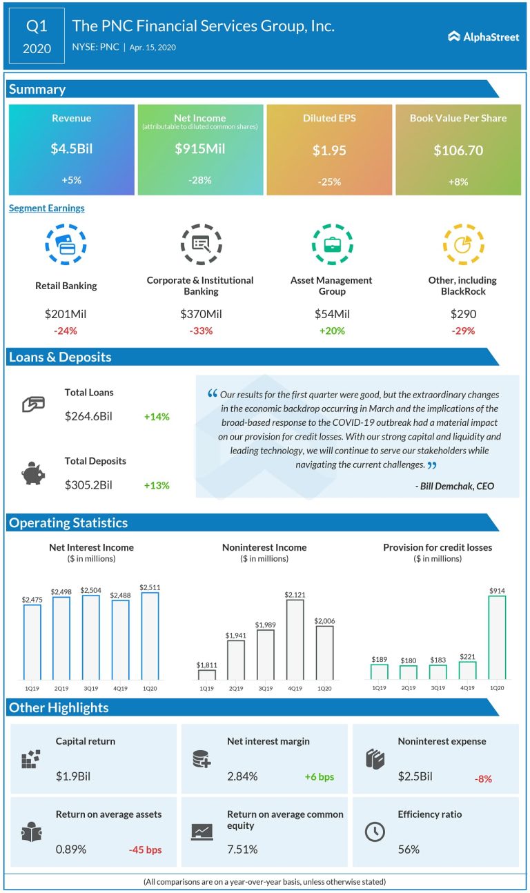 PNC Financial Services(NYSE: PNC) reported its Q1 2020 earnings results for the quarter ended March 31, 2020. COVID-19...