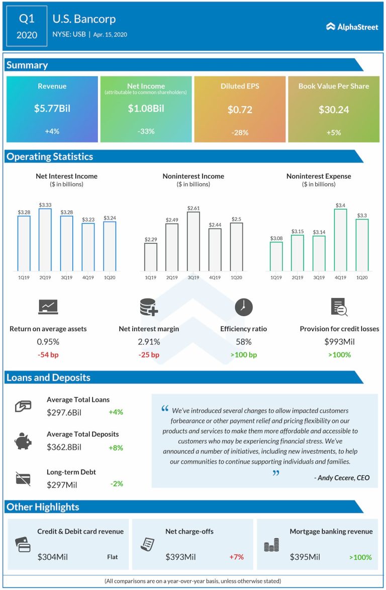 US Bancorp (NYSE: USB) reported earnings results for the first quarter of 2020 today. Net revenue increased 3.5%...