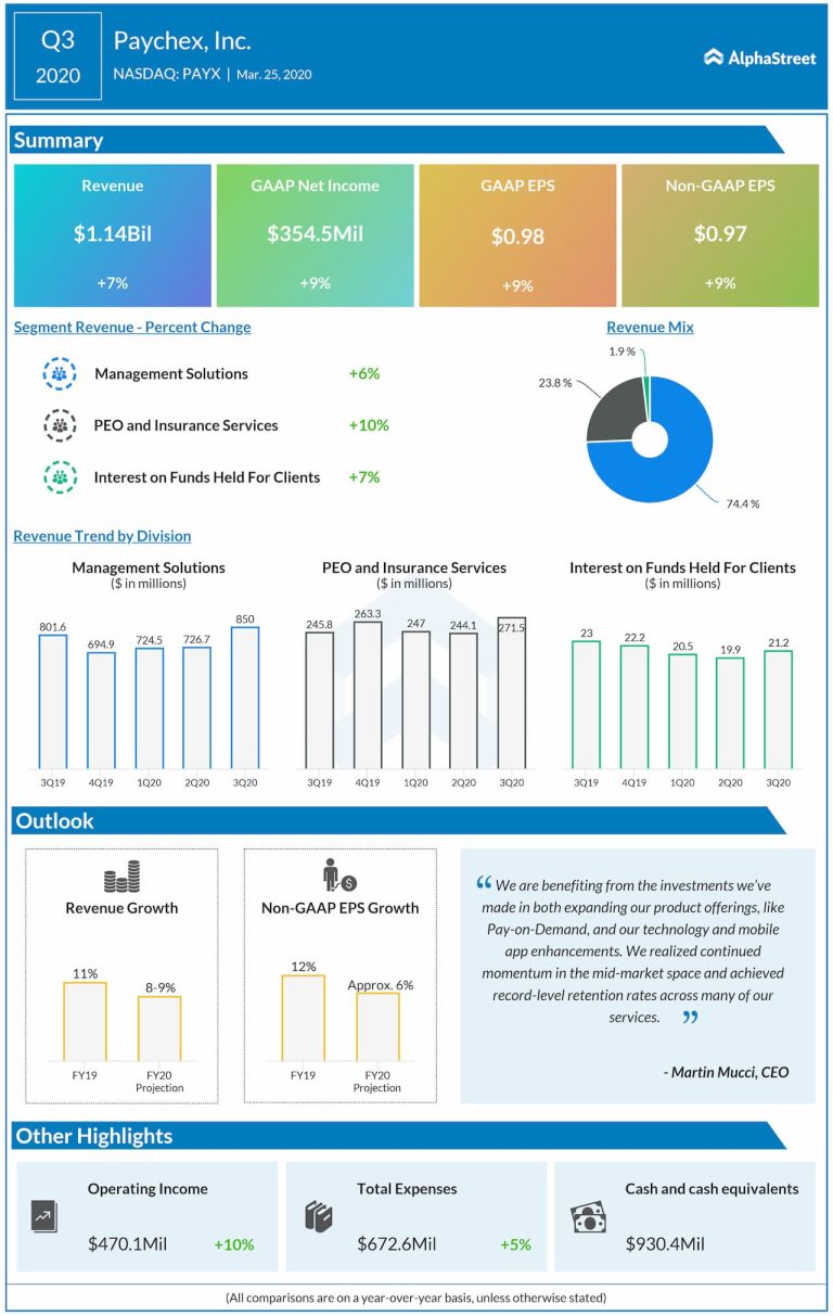 Paychex Inc. (NASDAQ: PAYX) reported better-than-expected earnings along with revenues that matched estimates for the third quarter of...