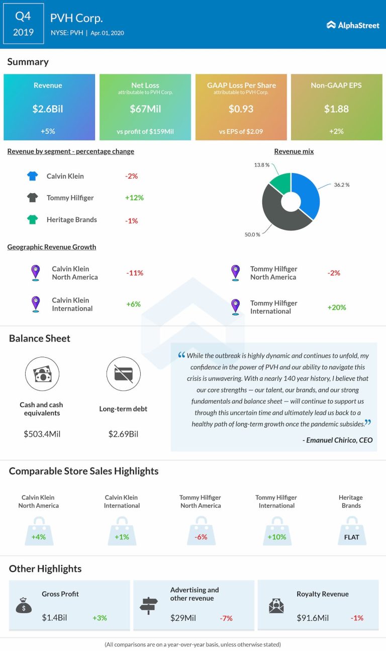 — PVH Corp. (NYSE: PVH) reported its fourth-quarter 2019 adjusted earnings of $1.88 per share versus $1.81 per...