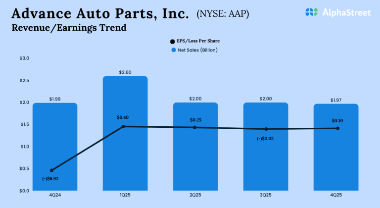 Advance Auto Parts, Inc. (NYSE: AAP) reported its fourth quarter 2025 earnings results today. Net sales remained flat...