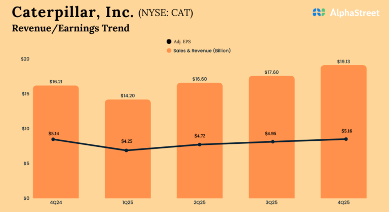 Caterpillar Inc. (NYSE: CAT) reported its fourth quarter 2025 earnings results today. Sales and revenues were $19.1 billion,...