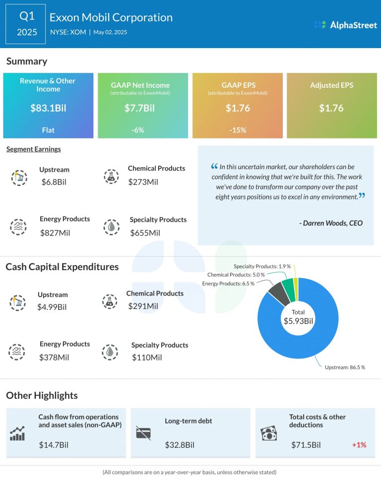 Exxon Mobil Corporation (NYSE: XOM) reported its first quarter 2025 earnings results today. Total revenues and other income...