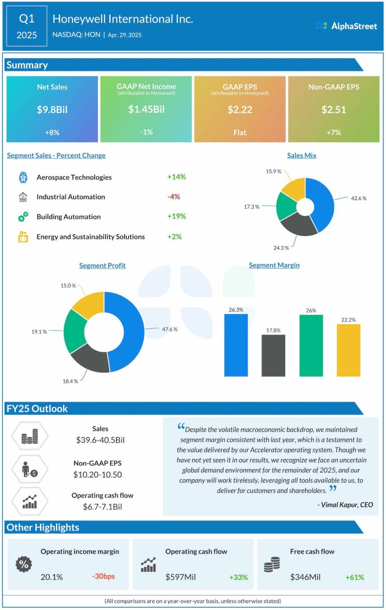 Engineering company Honeywell International Inc. (NASDAQ: HON) Tuesday reported higher earnings for the first quarter of 2025, on an...