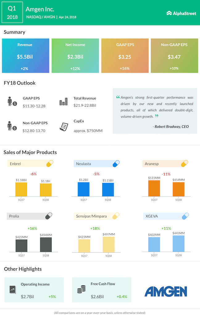 Benefitting from broad-based growth in product sales and lower tax rate, Amgen’s (AMGN) first-quarter earnings increased from last...