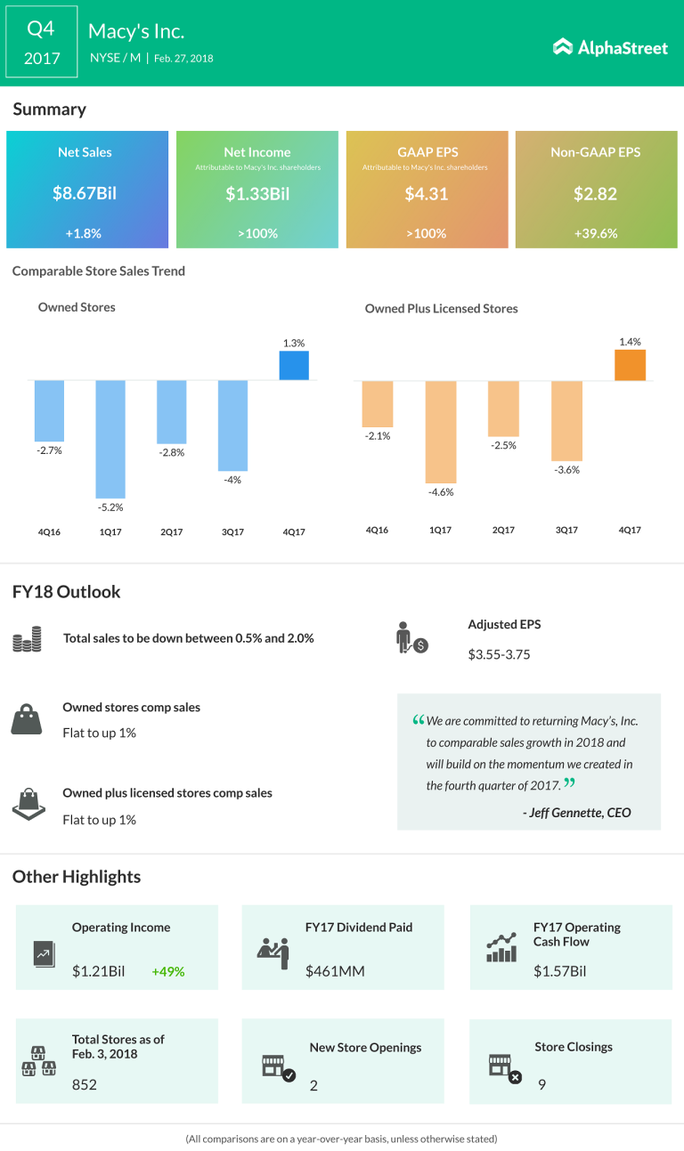 Retailer Macy’s reported strong results for the final quarter of 2017, thanks to the strong holiday sales. Macy’s...