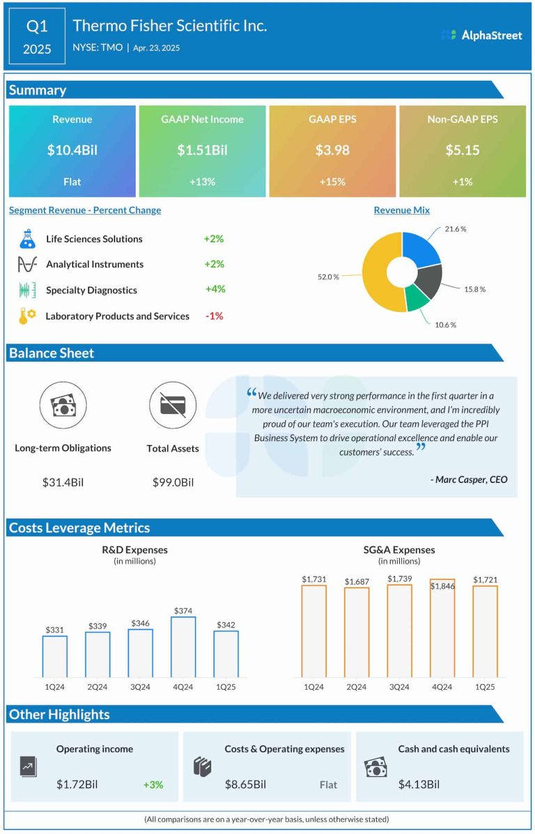 Thermo Fisher Scientific Inc. (NYSE: TMO) on Wednesday announced financial results for the first quarter of 2025, reporting...