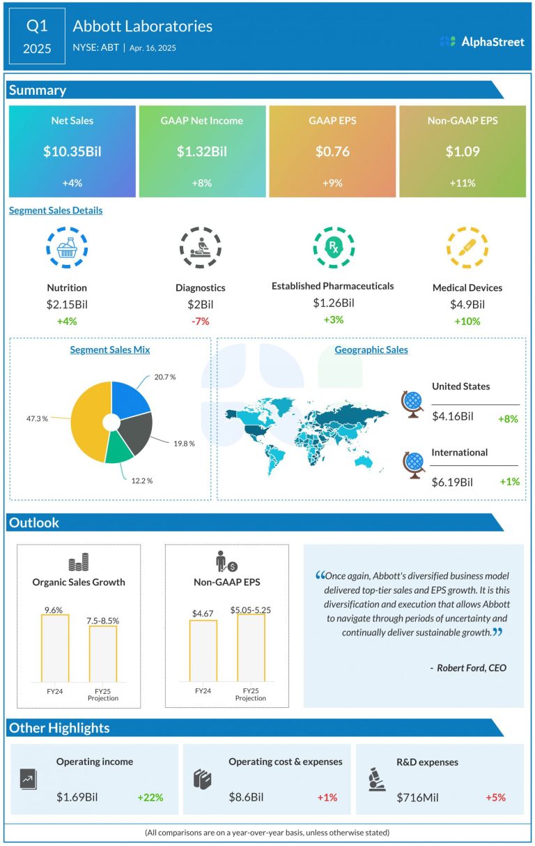 Abbott Laboratories (NYSE: ABT) reported its first quarter 2025 earnings results today. Total sales increased 4% year-over-year to...