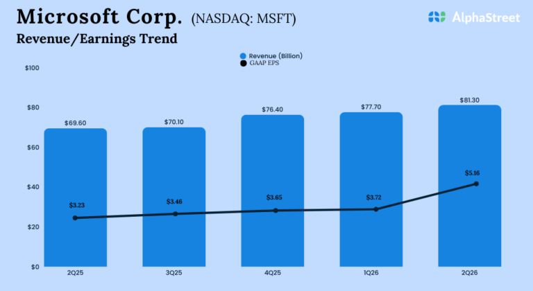 Microsoft Corporation (NASDAQ: MSFT) reported its second quarter 2026 earnings results today. Revenue was $81.3 billion, up 17%...