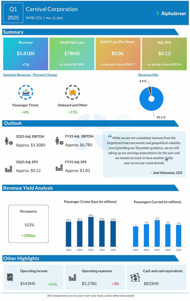 Carnival Corporation & plc. (NYSE: CCL) Friday reported an increase in revenue for the first quarter of 2025....