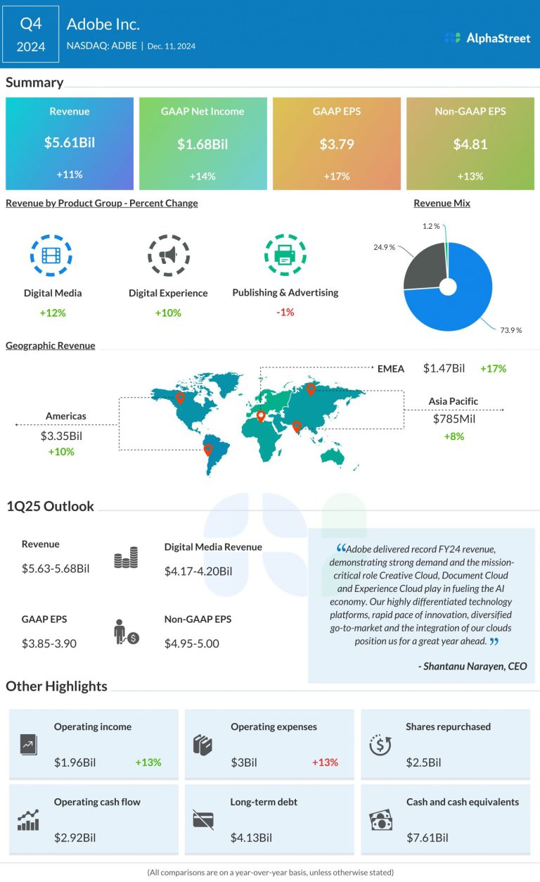 Adobe (NASDAQ: ADBE) reported revenue of $5.61 billion for the fourth quarter of 2024, up 11% year-over-year on...