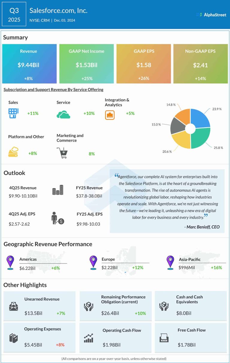 Customer relationship management platform Salesforce, Inc. (NYSE: CRM) on Tuesday reported an increase in earnings and revenue for...