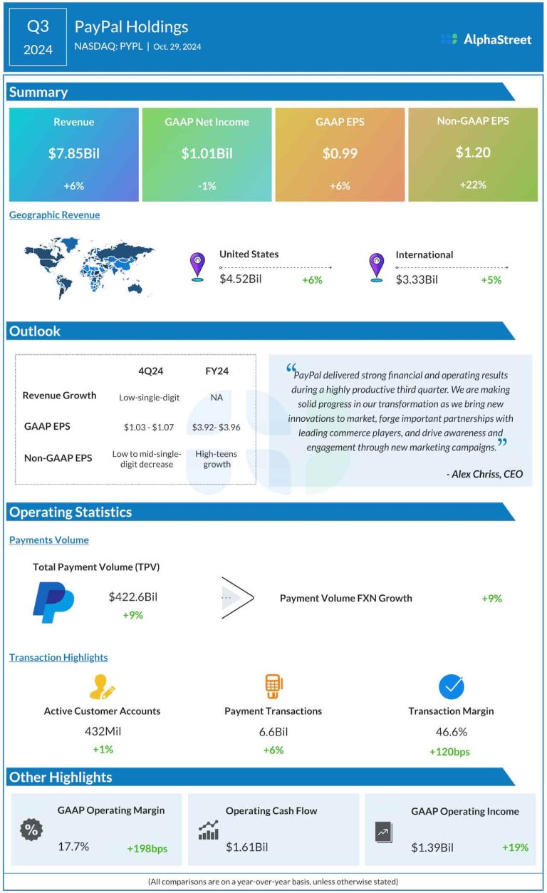 PayPal Holdings Inc. (NASDAQ: PYPL) announced financial results for the third quarter of 2024, reporting an increase in...