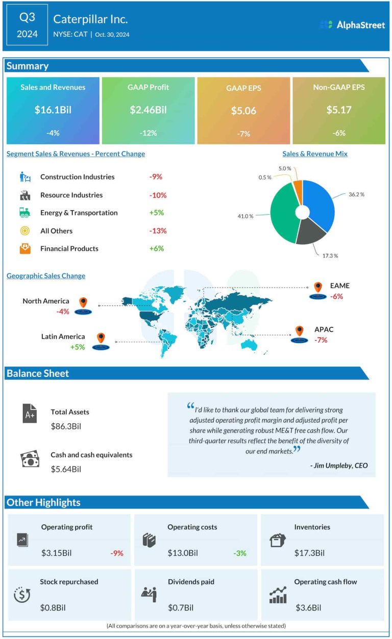Caterpillar Inc. (NYSE: CAT), a leading manufacturer of construction and mining equipment, on Wednesday reported a decrease in...