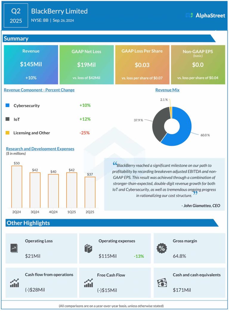 BlackBerry Limited (NYSE: BB) has announced financial results for the second quarter of 2025, reporting an increase in...