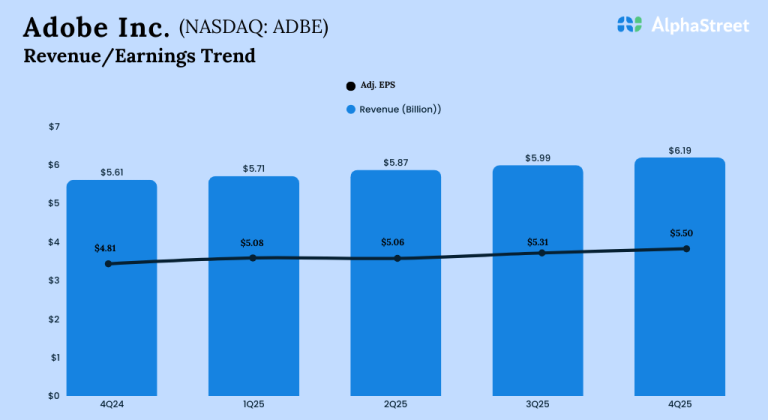 Adobe (NASDAQ: ADBE) reported revenue of $6.19 billion for the fourth quarter of 2025, up 10% year-over-year on...