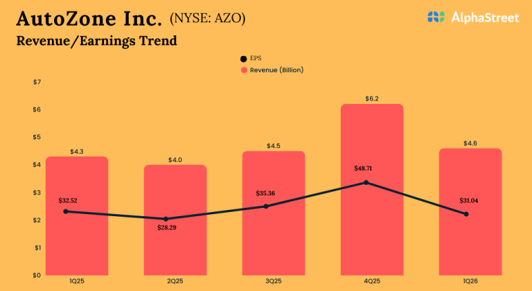 AutoZone, Inc. (NYSE: AZO) reported its first quarter 2026 earnings results today. Net sales were $4.6 billion, up 8.2%...