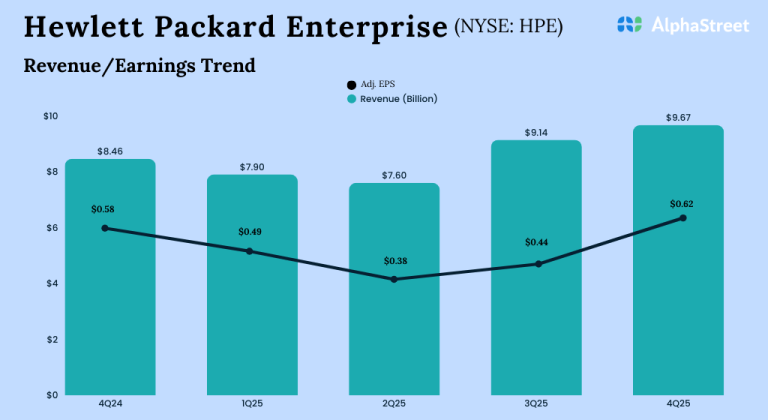 Hewlett Packard Enterprise (NYSE: HPE) reported revenue of $9.7 billion for the fourth quarter of 2025, up 14%...