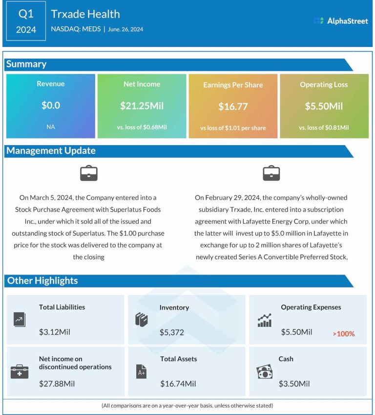 Trxade Health, Inc. (NASDAQ: MEDS), a leading health service IT company, reported financial results for the first quarter...