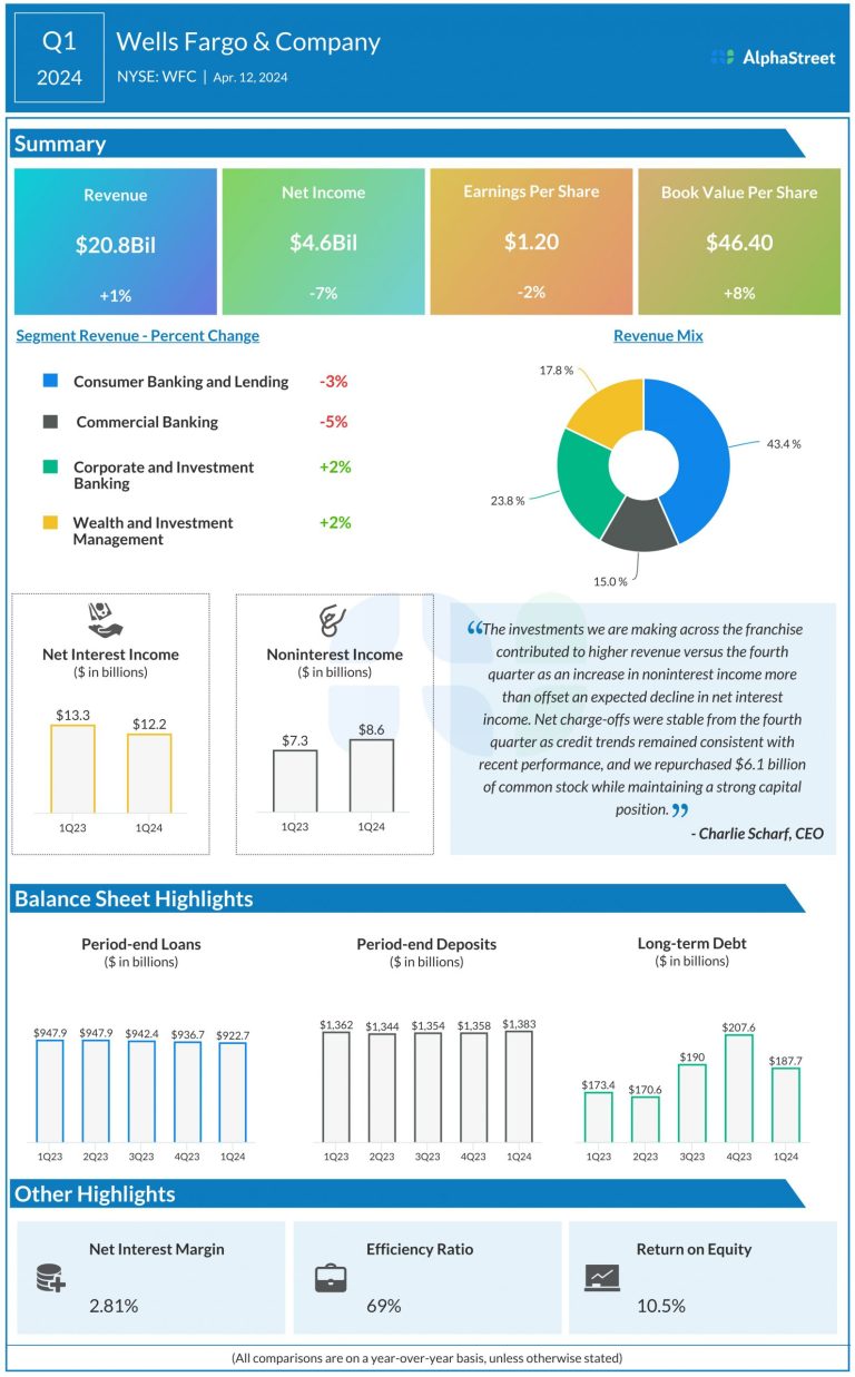 Wells Fargo & Company (NYSE: WFC) reported first quarter 2024 earnings results today. Total revenue rose 1% year-over-year...