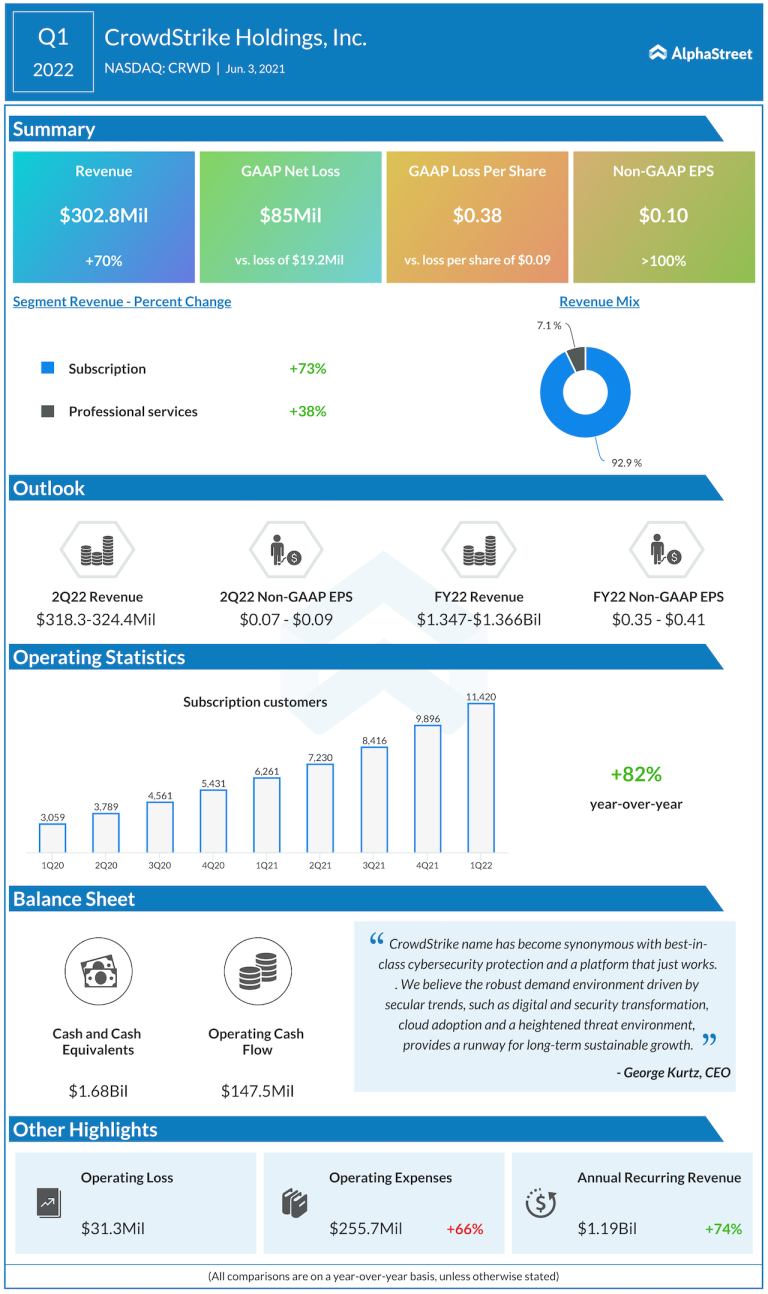 Shares of CrowdStrike Holdings Inc. (NASDAQ: CRWD) have gained 128% over the past 12 months and 10% over...