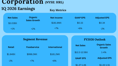 Hormel Foods Corporation (NYSE: HRL) reported its first quarter 2026 earnings results today. Net sales increased 1.3% year-over-year to $3.03...
